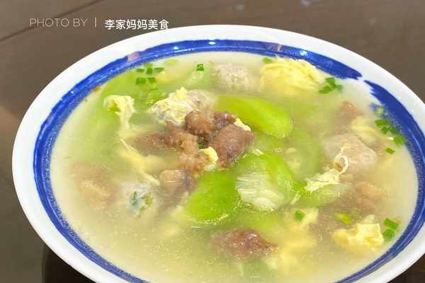 絲瓜肉羹湯傢裡人喜歡吃絲瓜,經常用絲瓜炒菜或煮湯。用絲瓜煮湯,可以加點海鮮,幹貝、花蛤、蛤蜊都可以,這樣味道更鮮,也不用加味精。