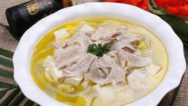 3、放入荷包蛋塊同煮,待湯汁發白時,依次下次豆腐、粉絲、白菜,煮開後放鹽即可。五.鍋塌豆腐