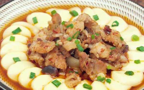 【美食名稱】:五花肉蒸豆腐。