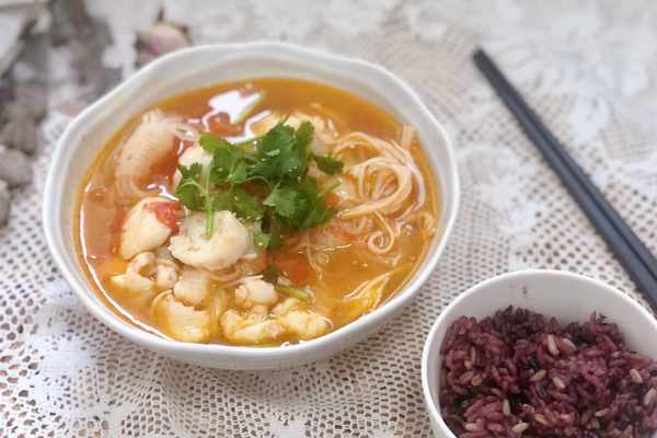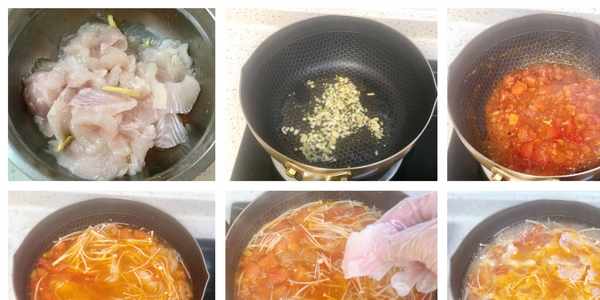 我很喜歡用西紅柿來配菜,它屬於百搭食材,酸甜的口感,可增進食欲,尤其是天熱的時候;夏天多吃些西紅柿,可以促進消化,生津止渴,對女性皮膚也有好處。【用料】:巴沙魚柳、西紅柿、金針菇、魔芋絲、香菜、薑、蒜、鹽、黑胡椒粉、生抽、香油、粉芡適量