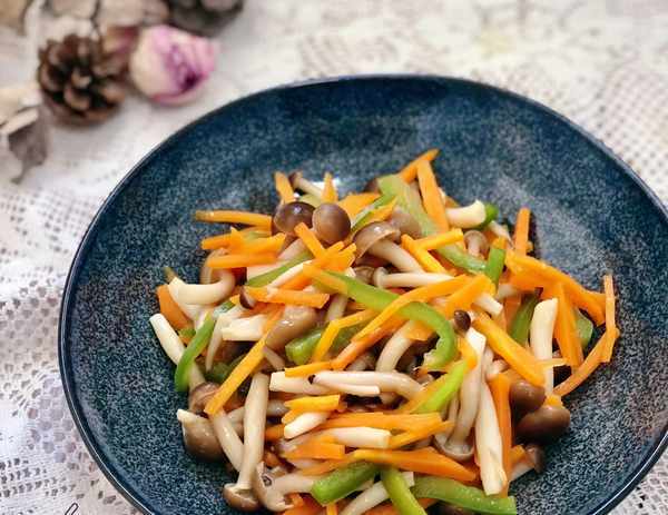 蟹味菇也叫玉蕈,是一種優質的食用菌,味鮮,口感韌滑,富含維生素、多種氨基酸和膳食纖維,營養豐富,夏天用它做菜,調劑口味很不錯。【用料】:蟹味菇、柿子椒、胡蘿卜、鹽、白糖、生抽、檸檬、香油適量