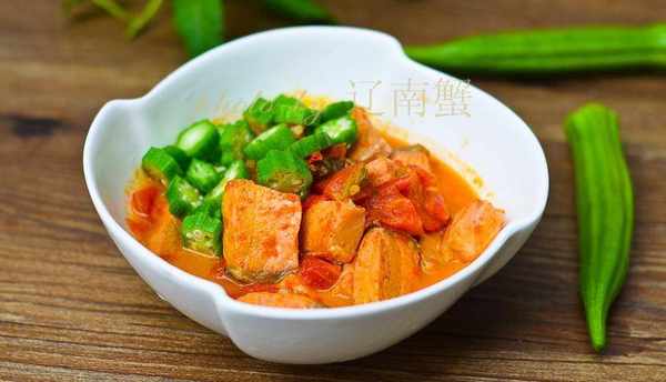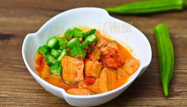 材料:三文魚 秋葵 蔥薑蒜 西紅柿