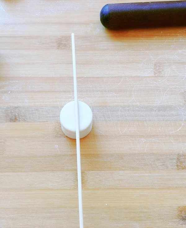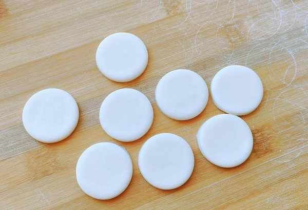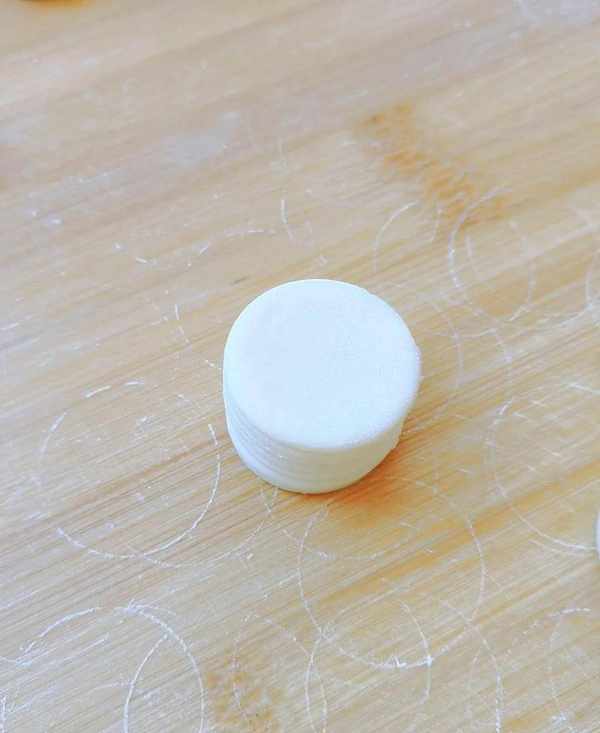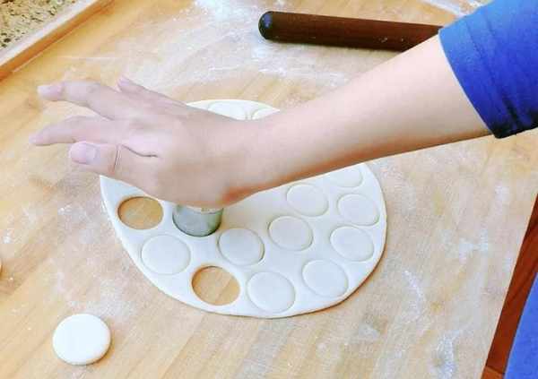扣出圓面片[用圓形模具或圓形瓶蓋即可]圖上模具直徑三厘米