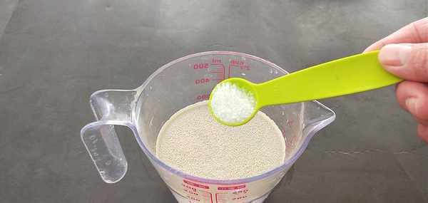 1、260毫升的溫水加5克酵母,1勺白糖,攪拌均勻(白糖可以促進面粉發酵)