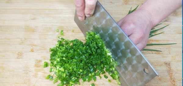 3、香蔥去掉蔥白,隻留蔥葉,切成蔥花裝入碗中備用