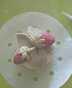 最後粘上兩顆草莓,第二種樣子完成。