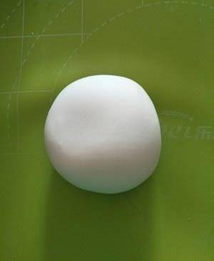 取30克加入1.5克菠菜粉揉成綠色。剩下的是白色面團分成三份。