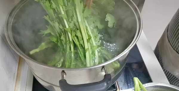 三、把鍋清洗幹凈,不沾油,鍋裡到入清水,燒開,把青菜放鍋裡烙水,菜變色就撈出,不要燙久瞭,久瞭做酸菜會壞的,特別是夏天。菜烙水完以後放盆子裡加入冷水