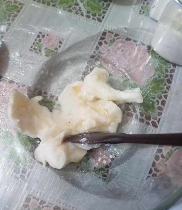 蛋黃醬熱切時配料邊緣濕瞭,這是正常的,咸蛋黃有白心其實也是正常的,室溫放1、2天,品質好的蛋黃,白心部分不自動變成白心。