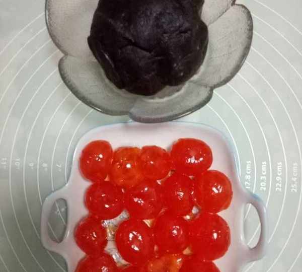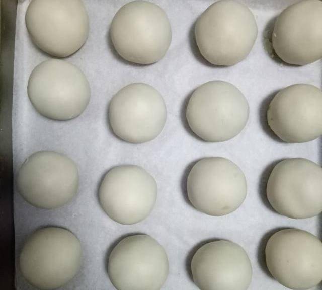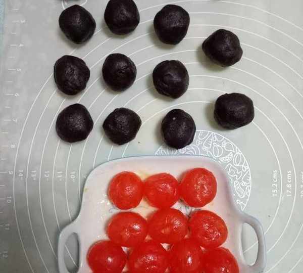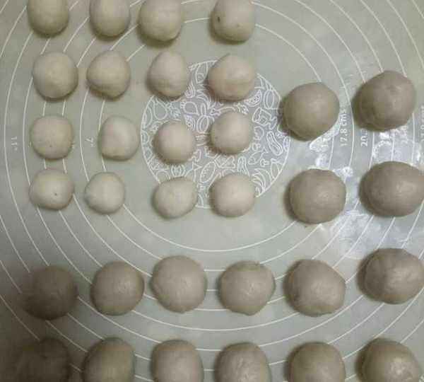 第10步、把豆沙餡分成12等份(我多做瞭幾個)。