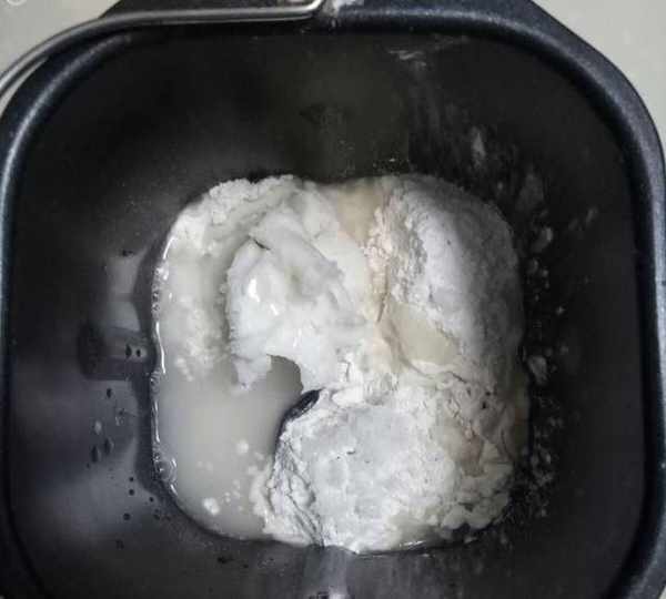 第2步、全部倒入面包桶內,開啟和面程序2次(大約50分鐘左右)。