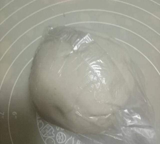 第7步、揉好的面團也用保鮮袋包好,靜置20分鐘左右。