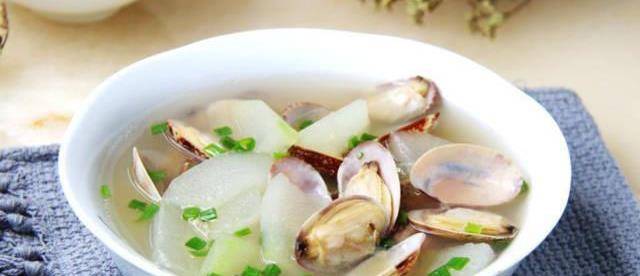 待冬瓜煮好後,再加入鹽和胡椒粉進行調味,再倒入洗幹凈的蛤蜊進去,再用大火將其煮到蛤蜊口張開後就可關火瞭。最後再盛入盤中,再表面上撒些小蔥末即可。