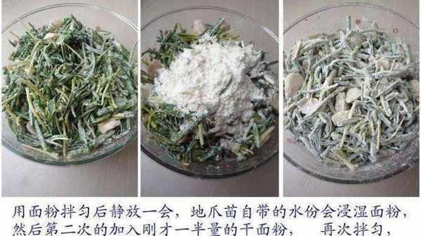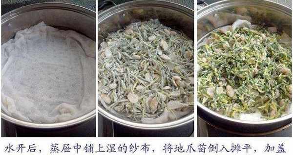 首先,蒸前要保持裹菜的面粉幹爽,菜與菜因為有幹面粉的隔斷而不粘連,這樣菜與面的配比也最合適,達到口感鮮嫩香還不黏連。