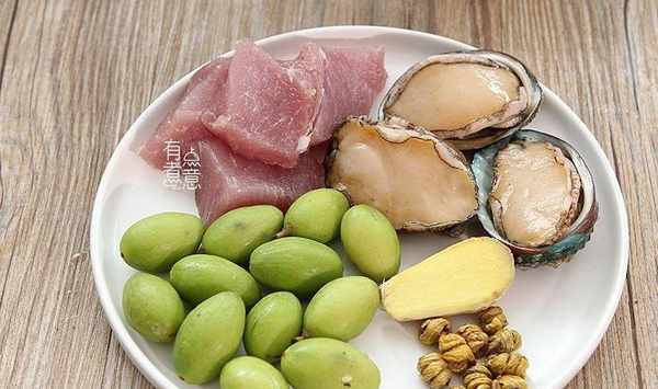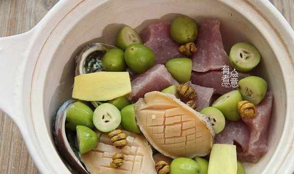 鮑魚味道鮮美,肉質細嫩、營養豐富,被譽為海洋的“軟黃金”,其富含蛋白質、氨基酸以及多種微量元素,有利於增強身體的免疫力。青橄欖是一種營養價值極高的水果,其中維生素C的含量是雪梨的5倍,用來煲湯有助於緩解口幹舌燥。