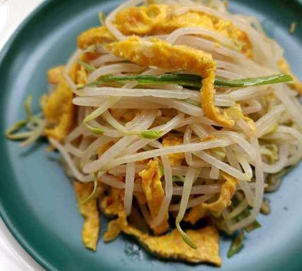 綠豆芽低卡且消暑,是很好的瘦身食物。搭配雞蛋,再放點芝麻醬,營養就全瞭。
