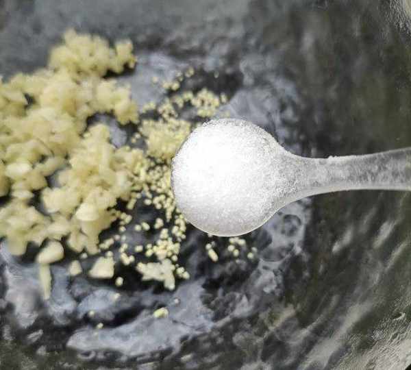 第13步、大蒜處理幹凈切末,放雞精和食鹽。