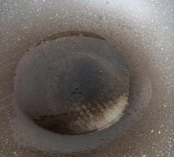 第7步、熱鍋冷油,晃勻。