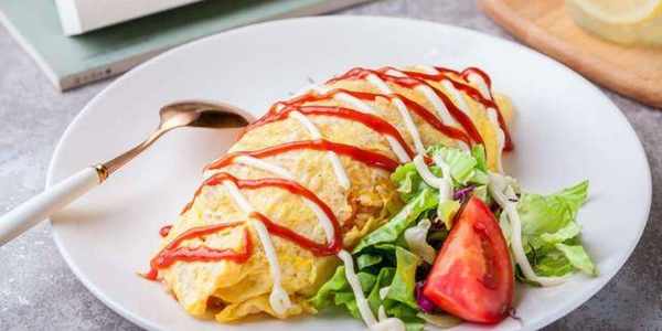 再來準備蛋皮,碗中打入兩個雞蛋,將少許食鹽增加底味,用筷子把雞蛋充分攪散,燒至油微熱下入雞蛋液,讓雞蛋液脫皮,用筷子夾住凝固的蛋皮,鍋底一邊轉動,這樣一個漂亮的蛋皮就做好瞭,把蛋皮蓋在米飯上面,淋上一點番茄醬,好看又好吃,營養豐富的蛋包飯就做好瞭。