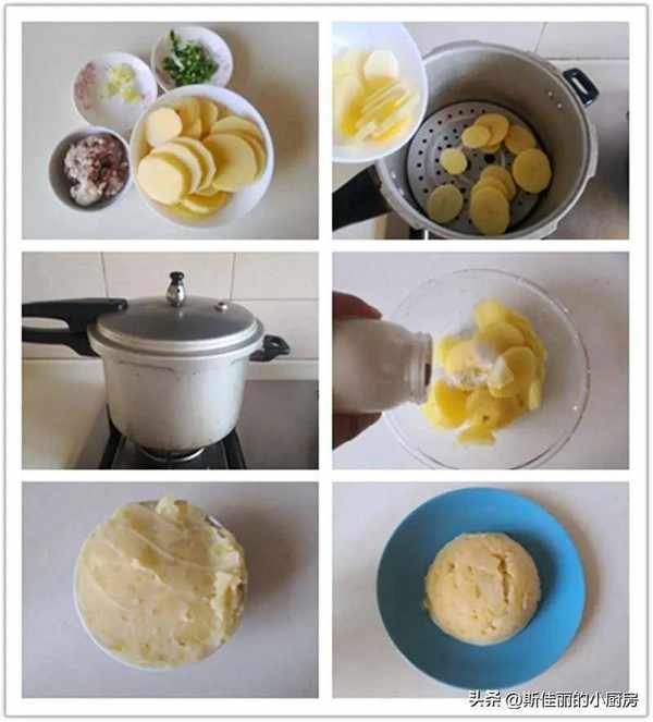 制作:1. 將土豆去皮後切成片放入蒸鍋中,大火將土豆片蒸熟,將蒸熟的土豆片加入少許鹽、胡椒粉等調味料攪拌成泥。 準備好一個小碗, 將拌均勻好的土豆泥填入碗中,倒扣在盤中,這樣土豆泥制作好瞭;