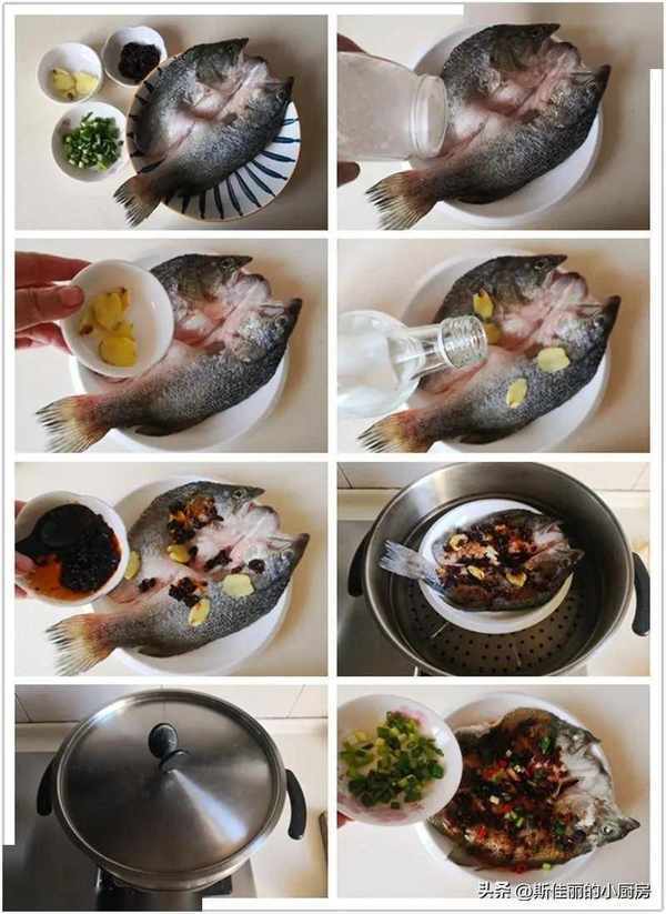 原料: 鱸魚 香辣豆豉醬 料酒 薑片 料酒 蔥花 紅椒 鹽