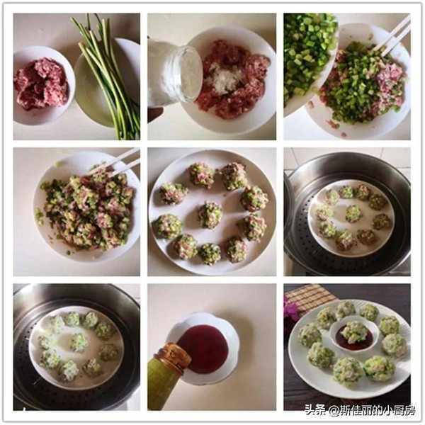 制作: 肉餡加入少許鹽、料酒、淀粉和薑末等調味料順著一個方向攪拌均勻,加入準備好的蒜薹末順著一個方向攪拌均勻; 將蒜薹肉末餡料團成丸子放在盤中。 燒鍋水,將蒜薹肉丸盤放入鍋中大火蒸10分鐘,將其蒸熟就好瞭。 再準備好一個調味料碟,小碟中放入泰式甜辣醬,最後將味碟放入蒜薹肉丸中間即可。