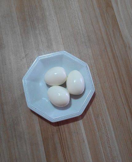 先把雞蛋煮熟,過涼水後剝殼備用。