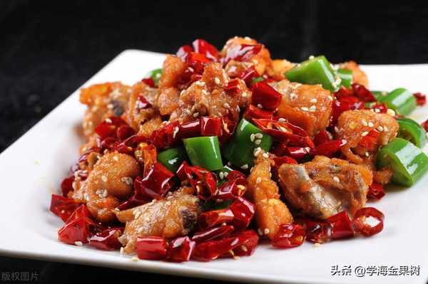 辣子雞是川菜中最具代表性的美食之一,也是我們最辣的美食之一。這道菜的主要配料是辣椒、蔥、薑和雞肉。雞肉被切成小塊,油炸至金黃色,然後再與炒好的辣椒、蔥、薑等佐料拌炒而成。這道菜的辣味非常濃鬱,同時還有雞肉的鮮美口感,是一道非常受歡迎的川菜。