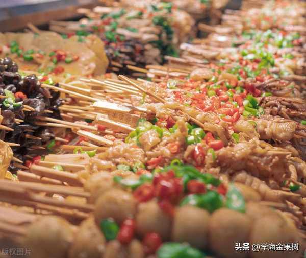 麻辣串串香是一種來自四川成都的小吃,它由各種食材如肉類、蔬菜和豆腐等穿在竹簽上,放入鍋中煮熟後塗上各種麻辣醬汁。這道菜的麻辣氣質非常濃鬱,而且吃起來非常方便。它通常會被擺放在桌子上,讓顧客自己挑選自己喜歡的食材,然後用筷子夾出來就可以直接品嘗瞭。