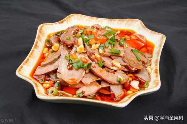夫妻肺片是一道來自四川省成都市的傳統美食,也是我們最辣的美食之一。主要原料是豬肺肉和牛肉,切成薄片後放入辣椒油中浸泡,然後再加上花椒粉、芝麻、蔥薑等佐料拌勻即可。夫妻肺片氣質鮮美,辣味十足,是很受歡迎的川菜。