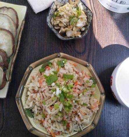 不爛子將蔬菜(如土豆、胡蘿卜、茄子、豆角等)拌入面粉,攪拌均勻後上籠蒸熟。春末榆樹槐樹開花時也可以用榆錢、槐花做食材。