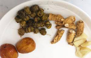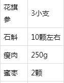 將石斛和花旗參用水沖洗一下,備好2粒蜜棗,少許薑片