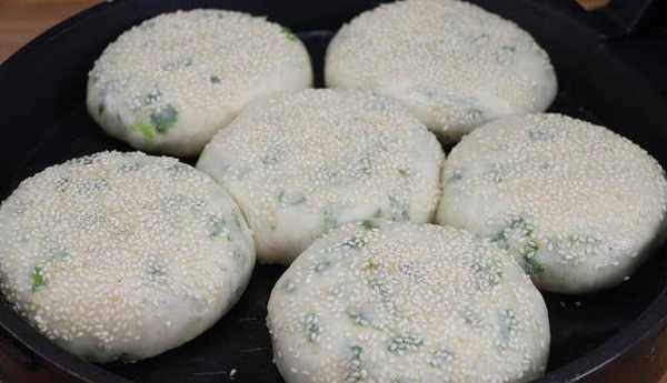 看這個顏色,就非常的有食欲,出鍋。端上桌以後,一傢人就可以美美的享用瞭,表皮是這種膠香酥脆的,而且又沾上瞭芝麻,別提有多香瞭,掰開看一下,裡面的這個層次也是非常的豐富,發面的也非常好消化,裡面的蔥花也是非常的翠綠。看著就非常的有食欲,按壓一下非常渲軟,做法簡單,喜歡就快收藏吧。