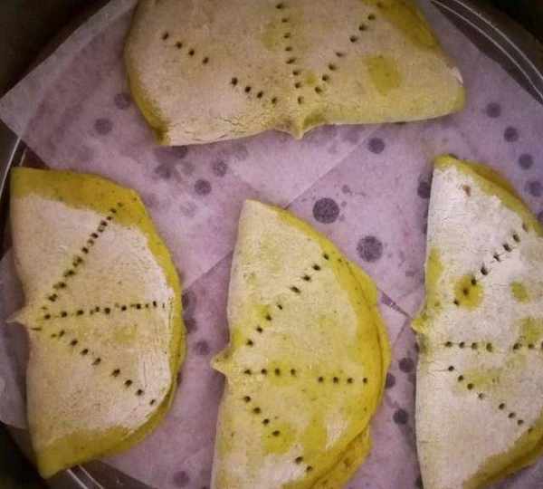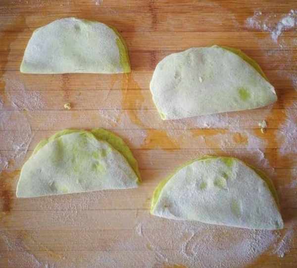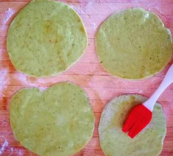 第9步、搟好的皮兒一面刷油。