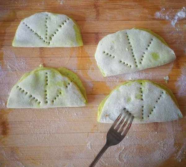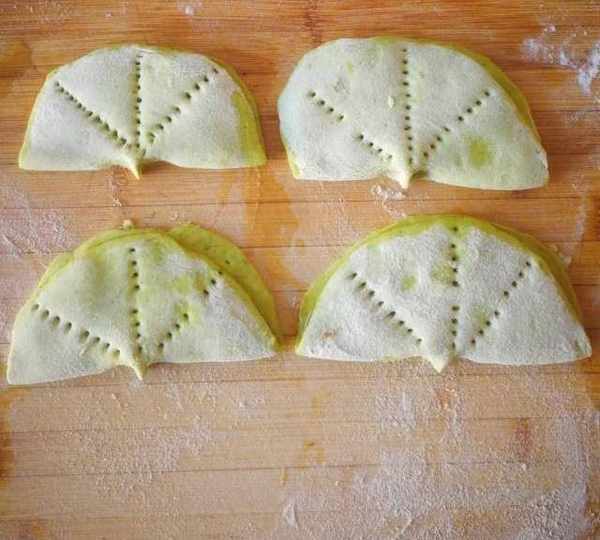 第11步、用叉子紮眼兒,做荷葉的葉脈。