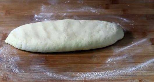 然後取一半,搓長,用手再摁扁一下。