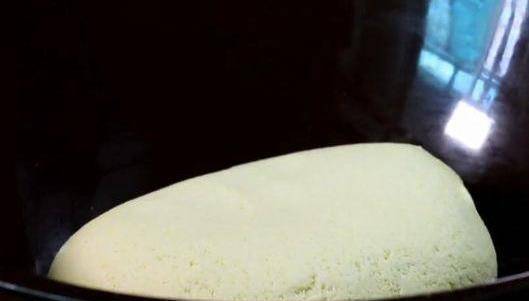 用250克溫水和面,邊倒邊攪,先用筷子攪成棉絮狀。再用手揉成光滑的面團。醒發至原來面團的2倍大。