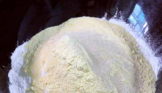 350克面粉裡加入150克玉米粉,再加入5克酵母。