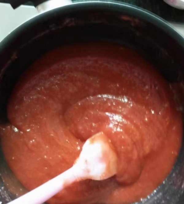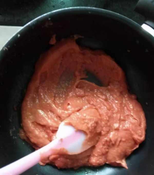 8、煮好的山楂泥倒進烤盤裡,然後平鋪在烤盤裡,厚度大概3毫米就可以瞭,鋪好的山楂泥,放進烤箱裡,做這個火不能急,90度烘烤3個小時就可以瞭。