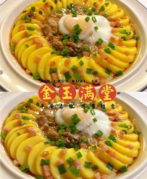 (2)玉子豆腐放盤子切厚片推倒,放入肉沫中間留空放入一個雞蛋;