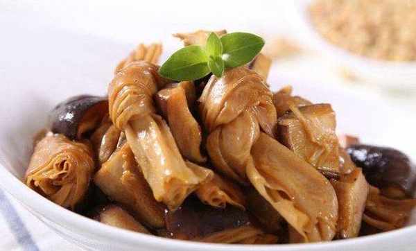 香菇雞肉腐竹:三黃雞四分之一隻、鮮香菇20克、腐竹20克(提前用水泡發)、豆瓣醬、生薑、蔥、料酒、胡椒粉各適量,雞脯肉加調料稍微醃制備用,香菇洗凈後擠幹水分切成片,泡發的腐竹擠幹水分後切成長約3厘米的段,生薑切片,蔥切末,熱鍋放油,下入雞肉和薑片,薑炒出香味,雞肉炒至變白,下入香菇,炒至香菇變軟,放入腐竹、豆瓣醬(可放可不放,根據個人口味)與適量的鹽炒勻; 下入蔥末與少許生抽,炒勻即可!