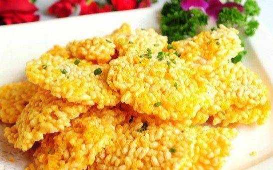 蛋黃焗鍋巴:鍋巴適量、咸蛋黃適量、油適量、鹽適量,將整塊的鍋巴弄碎,不要太大瞭,一會不好焗蛋黃,將咸鴨蛋煮熟,取出蛋黃,把蛋黃壓碎,鍋內倒入少量的油,把蛋黃倒進去,炒到蛋黃冒泡,倒入鍋巴,來加翻炒,把蛋黃焗均勻瞭就可以瞭,可以依據各人口味,決定是不是放鹽!