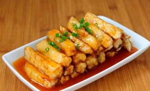 脆皮糖醋茄子:1.茄子去皮,切成粗條。2.撒鹽抓勻,醃制10分鐘。3.碗中加入適量面粉,加入少許水,一個雞蛋,攪拌成糊。4.鍋中燒油將茄條在面糊中蘸一圈,然後下鍋炸至酥脆金黃撈出控油。5.番茄醬、醋、蠔油、水、糖調成汁,鍋中熱油,放入蔥花爆香,倒入料汁燉煮。6倒入炸過的茄子快速翻炒,使每塊茄子都能均勻沾滿料汁即可。