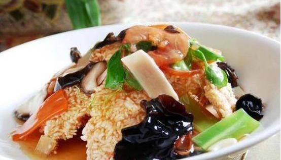 3.鍋中放油燒至八成熱,放入鍋巴下去炸