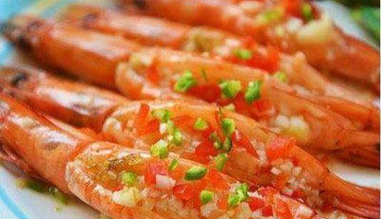 6.將蒜丁放在蝦肉上,沾點橄欖油。罩上錫紙。放入烤箱,上下火烤15-18分鐘,150-180℃