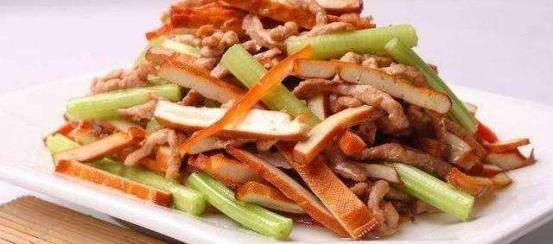 5.之後先放入芹菜翻炒3分鐘 再把豆幹倒進去 我沒有加鹽和別的佐料 因為豆瓣醬味道夠瞭