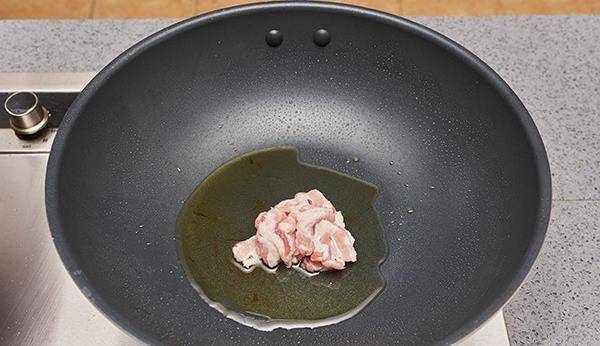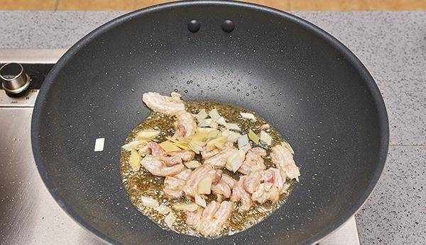 5.另起鍋加入食用油燒熱放入肉片翻炒。