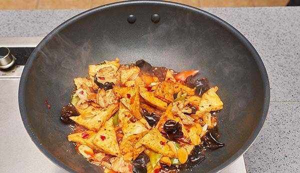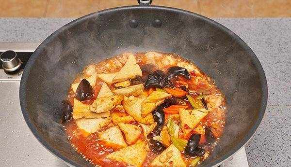 9.將豆腐、青紅椒、木耳放入鍋中慢燒一會。