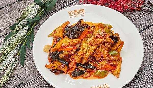 輔料:青紅尖椒片-30克 蔥-10克 薑-10克 蒜片-10克 泡好的木耳-150克 鹽-2克 雞精-2克 蠔油-8克 醬油-5克 料酒-10克 糖-5克 生粉-6克 老抽-5克 辣椒醬-8克 食用油-適量