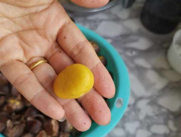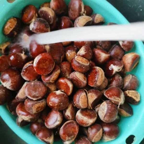 買回來新鮮的板栗,新鮮板栗都帶著硬硬的殼,這個殼不經過處理很難去的掉。